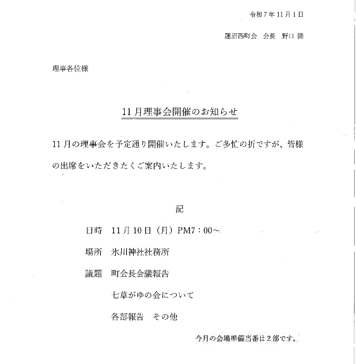 HOME > 全て > 町会から > 理事会 > 2025年11月理事会開催のお知らせ