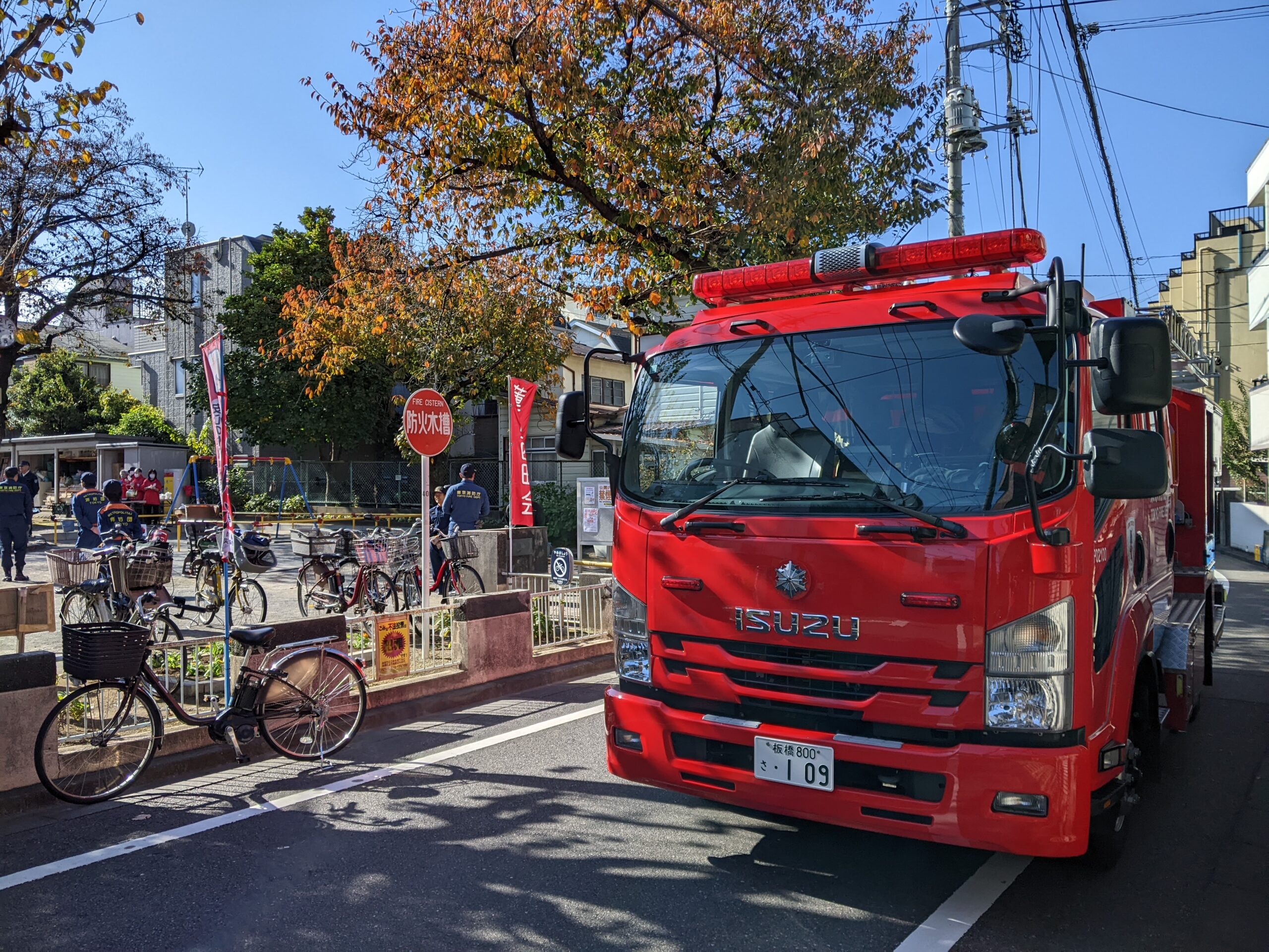 そして大型消防車も出動。子供を運転席に座らせたり、子供たちにとっては思い出となるものでした。