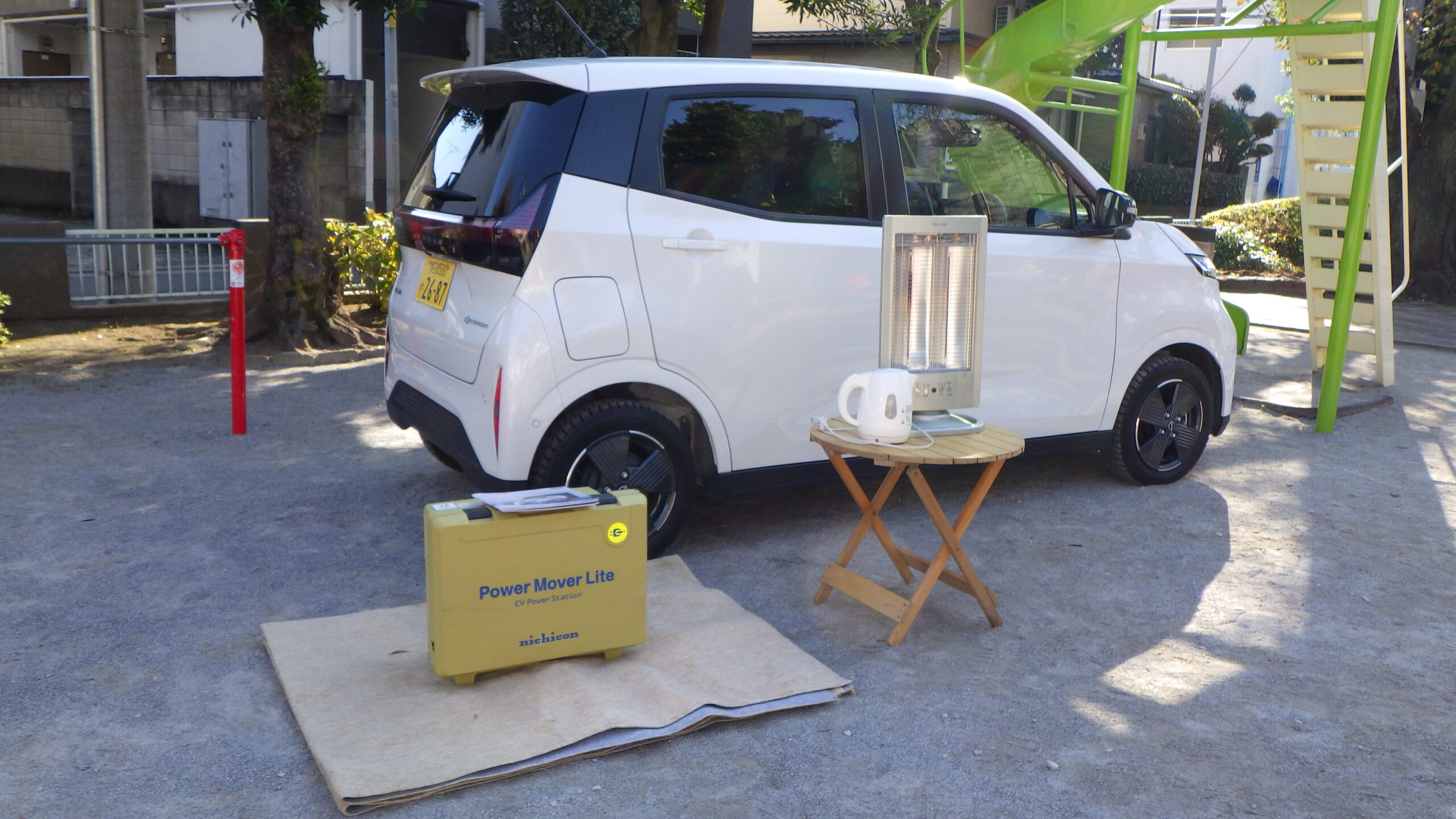 また、災害時に活用できる電気自動車(日産サクラ)と外部給電機によるデモンストレーションを実施。電気自動車のバッテリーは災害時の電源として役立ちますが、こちらは意外と興味を持たれる方が多かったようです。
