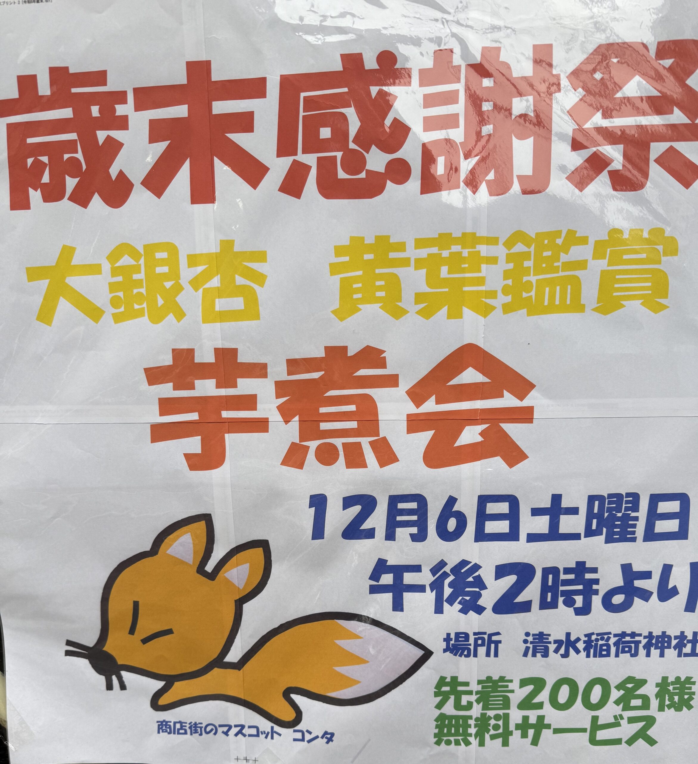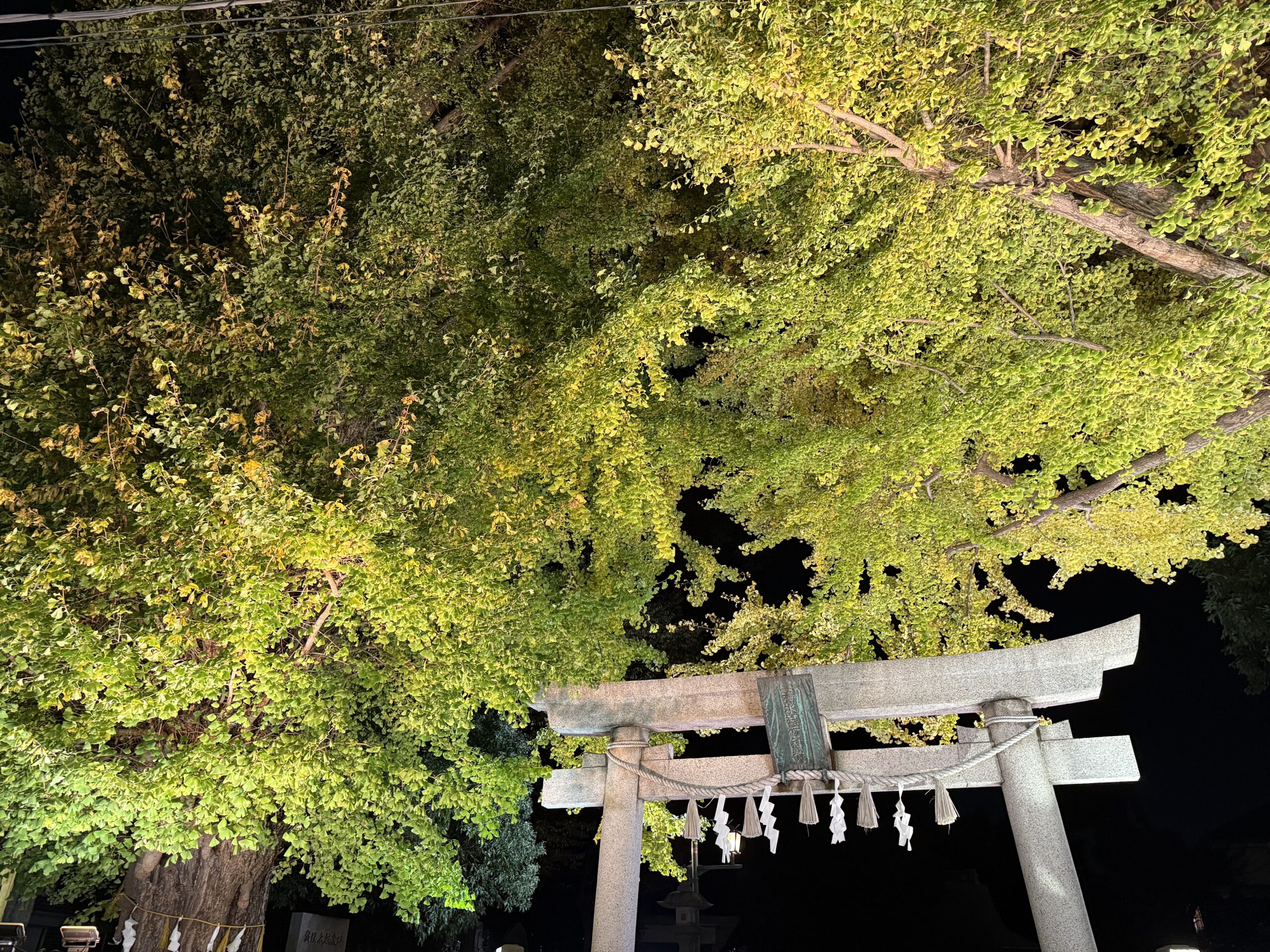 清水稲荷神社では、銀杏のライトアップも始まりました。