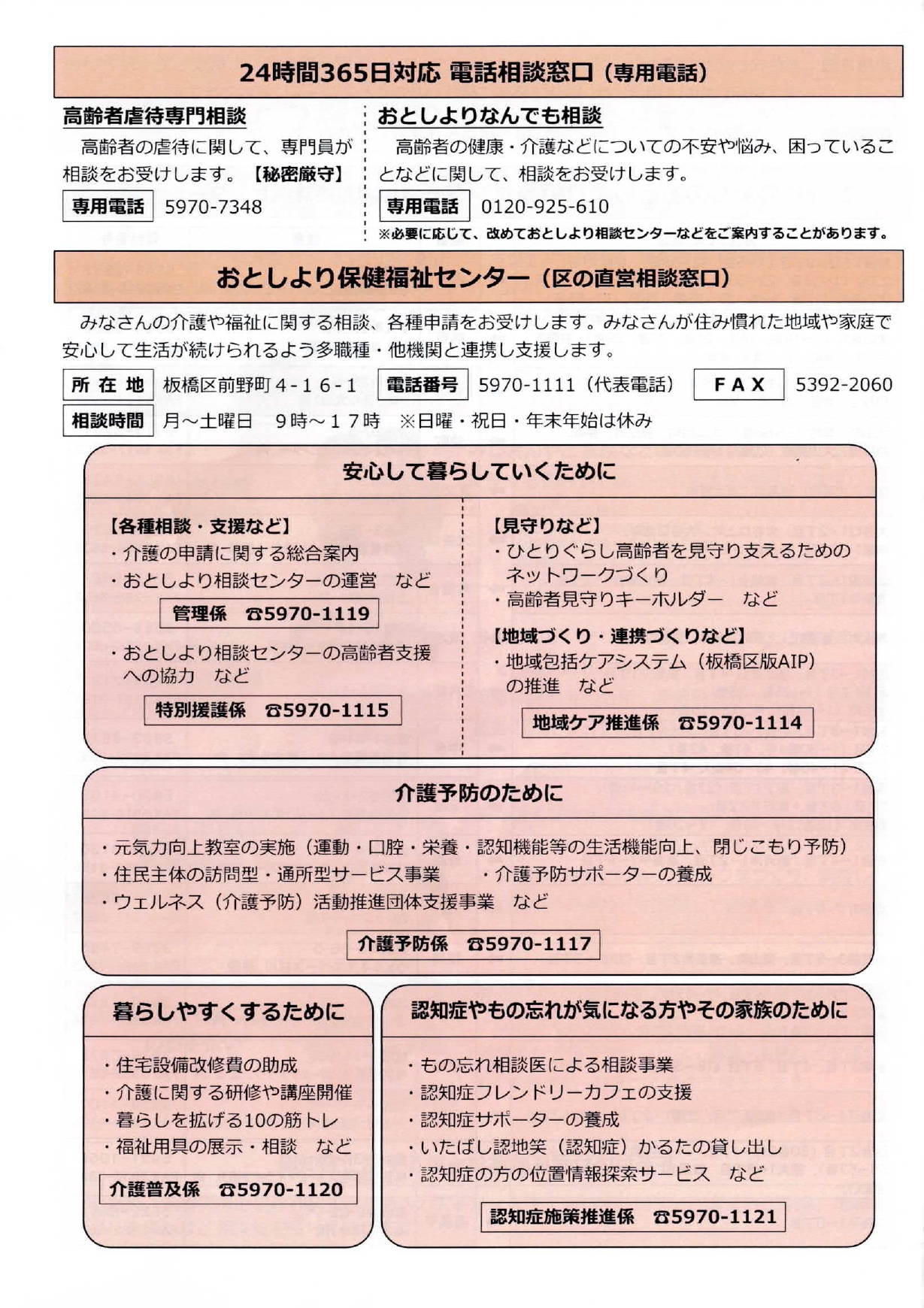 高齢者のみなさんの総合相談窓口(おとしより相談センター)
