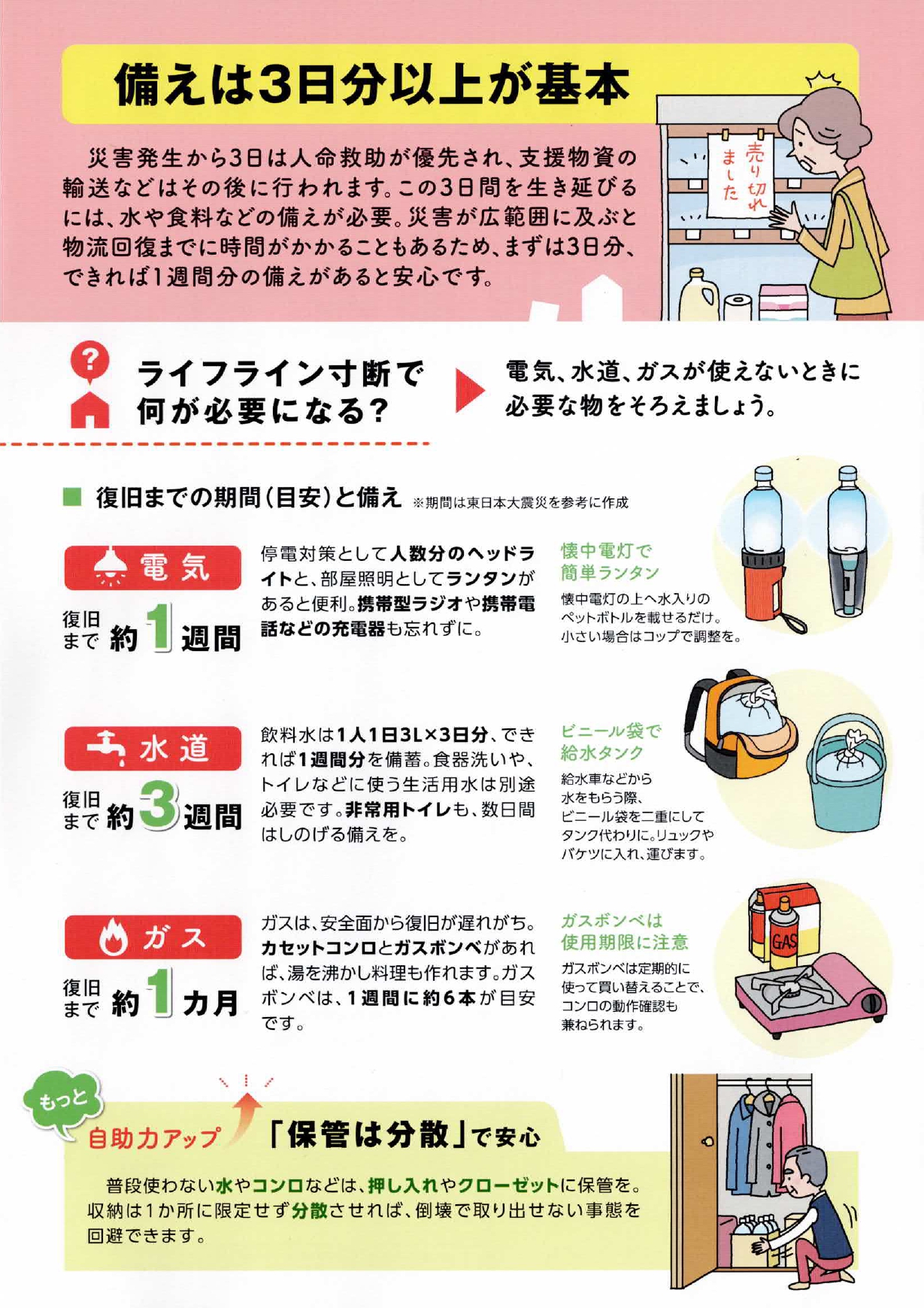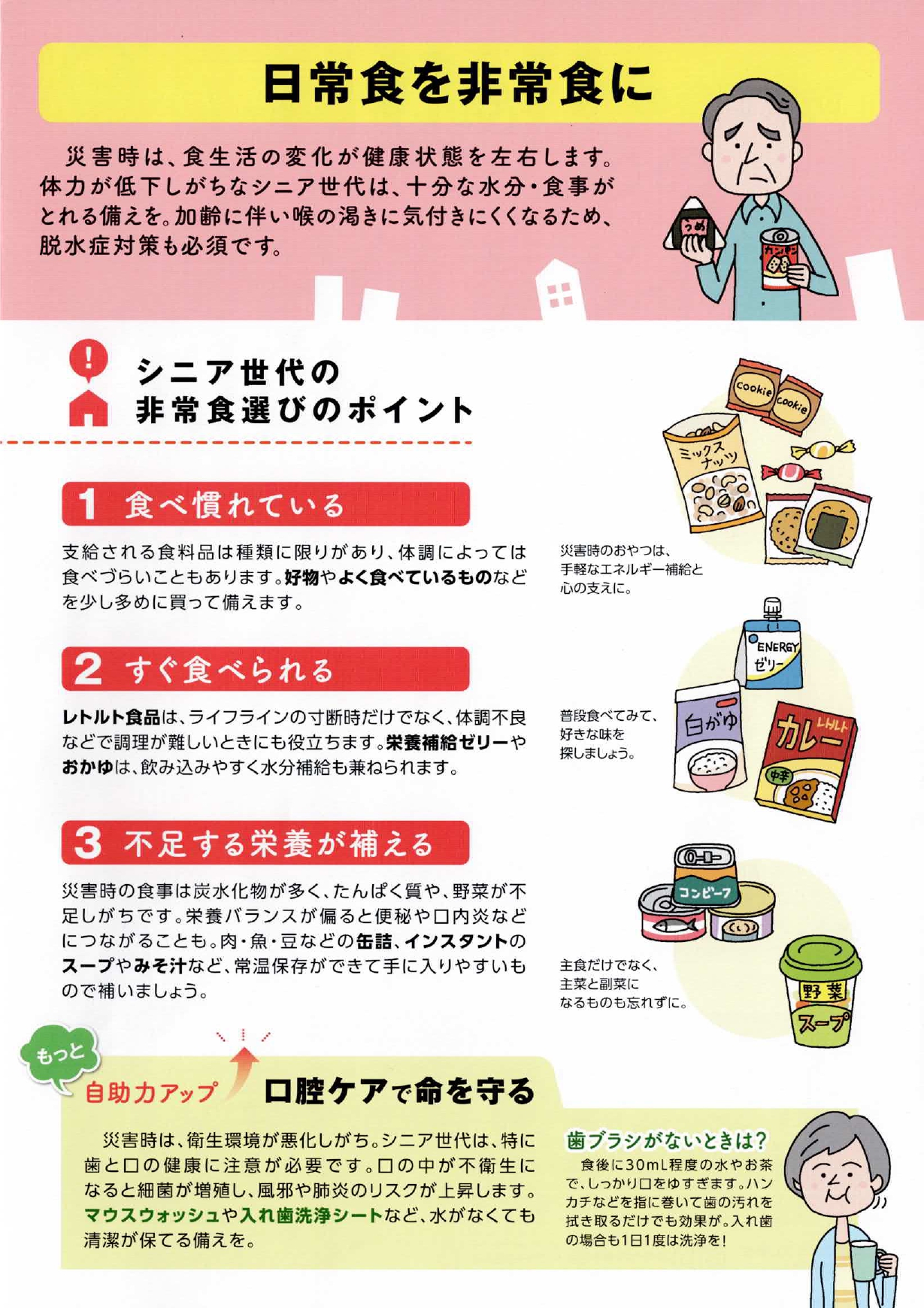 シニアのための防災備蓄ガイド 町会から 防災部 2026.03.23 災害に備え自助力をアップしましょう! 核家族化が進み、ご夫婦だけで、あるいは独居でお住いのシニア世代の方が増えています。 「自らの生命は自らが守る」ためには、ふだんの備えが重要になります。 シニアのための防災備蓄ガイド (広報部)
